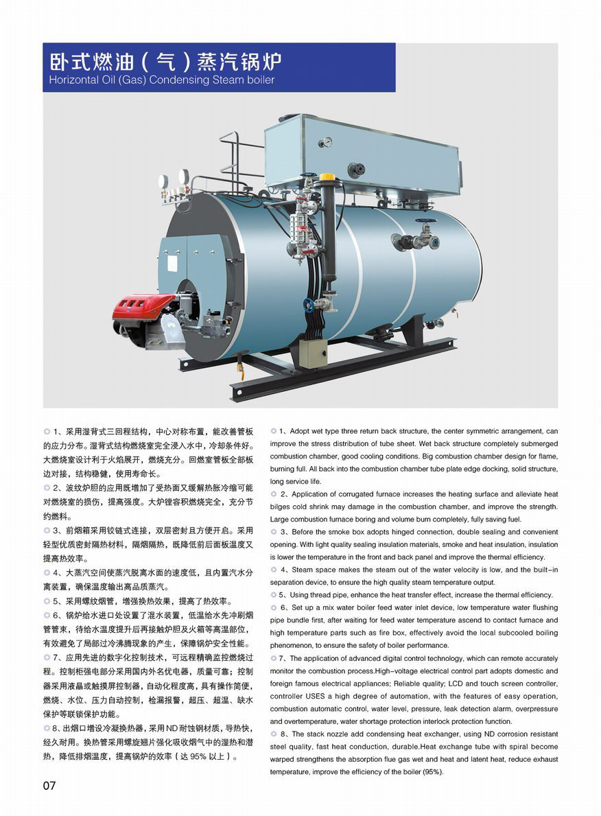 卧式(冷凝)燃油(气)蒸汽锅炉特点
