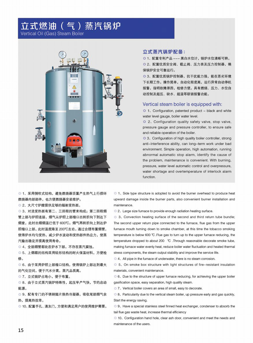立式燃油(气)蒸汽锅炉特点