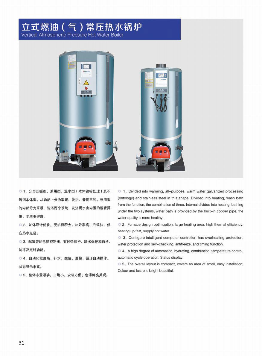 立式燃油(气)常压热水锅炉特点